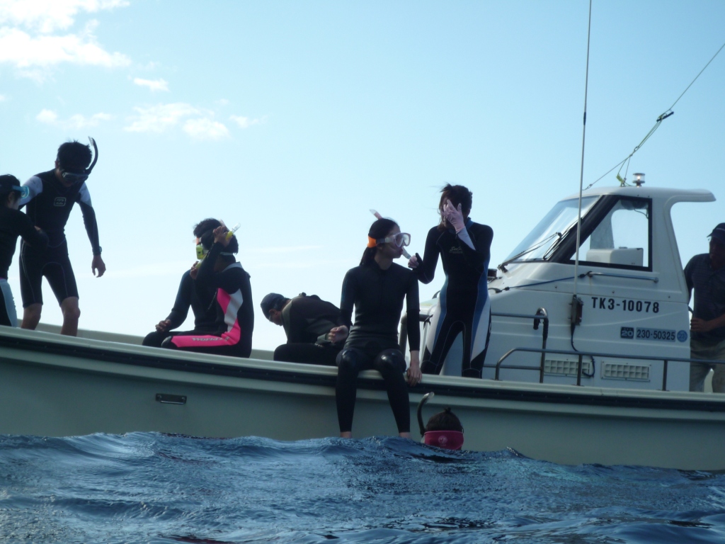 民宿の所有する船に乗って、10人くらいで海へ。