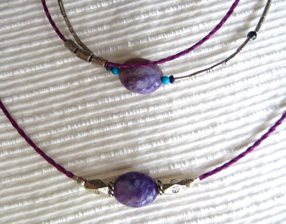 やっとしっくりきました! 紫の2色の絹糸と合わせた2連も作りました。それは神戸で新紹介させていただきます。